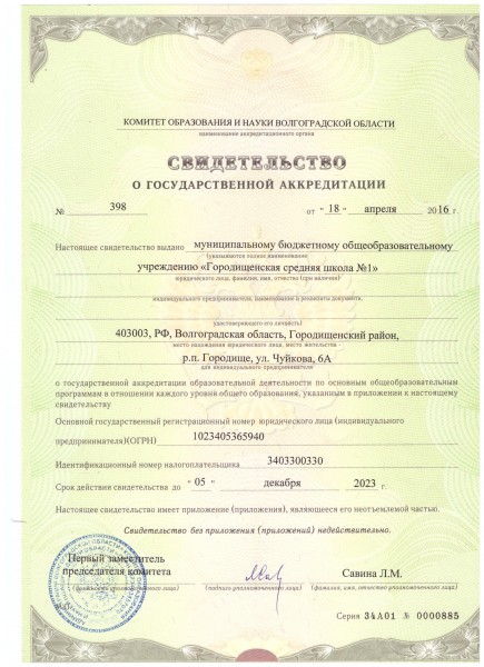 | Адрес местонахождения образовательной организации* | 403003, Волгоградская область, р.п. Городище, ул. им. Маршала Чуйкова, дом 6а |